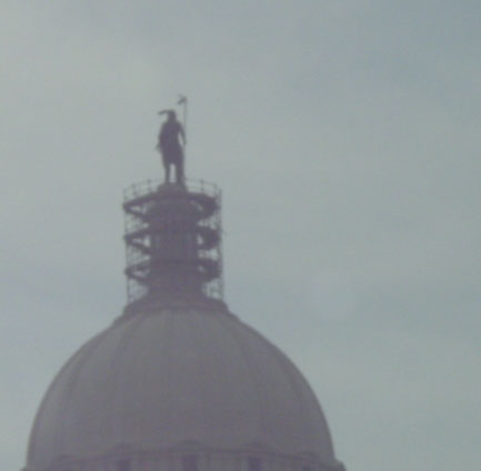 As we went through Oklahoma City Rudy took us by the state capital to see the newly installed statue on top of the dome. This was taken through the bus window.