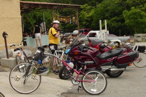 Some other kind of bikes. Those big ones had motors! And here we are peddaling ours!! What's wrong with us!!!