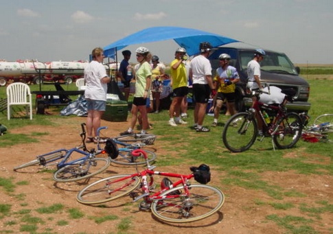 A welcome rest stop at a grain elevator. There were a lot of wheat trucks on the road and they didn't like us very much.