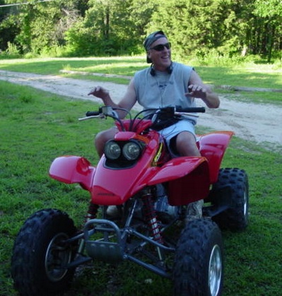 On Friday night we went to the home of Tom Baker's ex relatives (previous marriage) and had a super time. This is Bruce who was tooling around on this rig as we drove in.